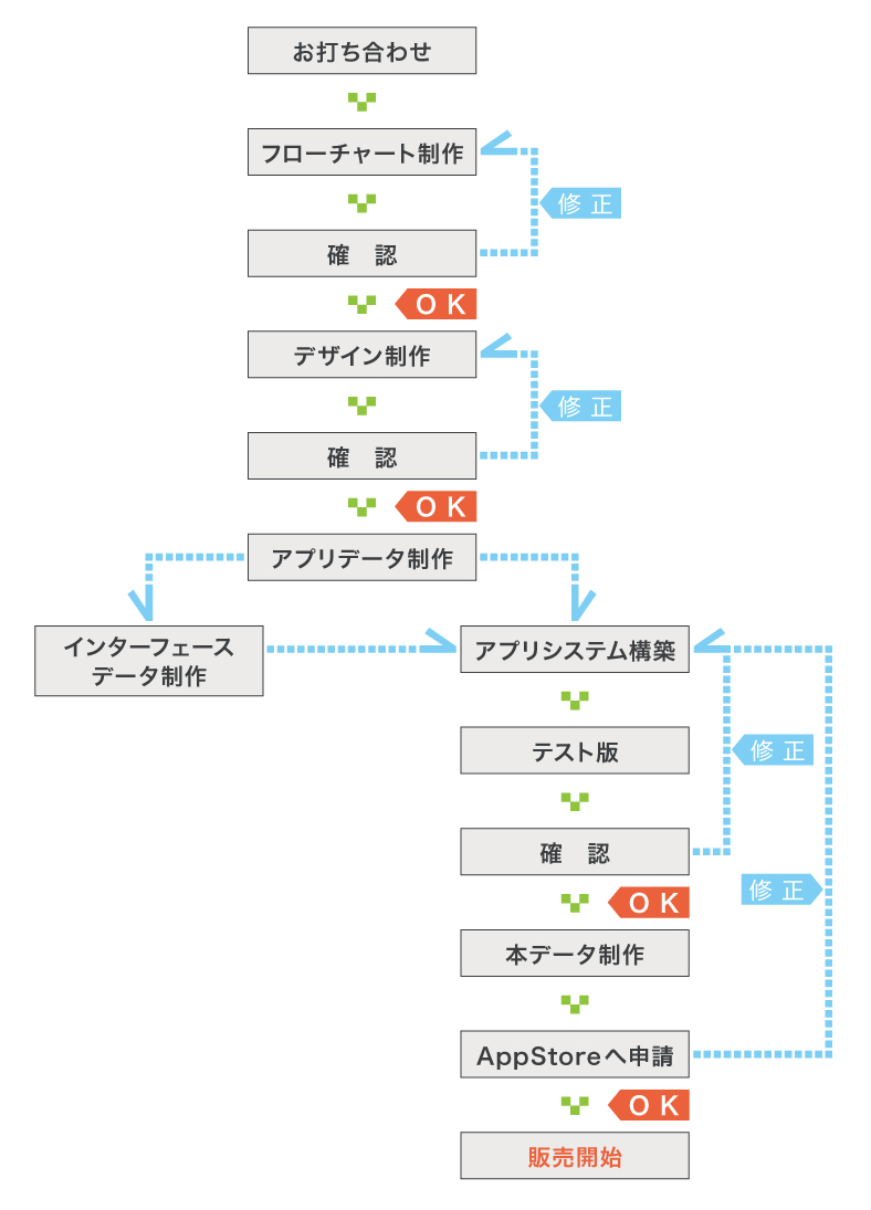 iPhoneアプリの制作(企画、デザイン、システム、アップストアへの代行申請、サーバ対応、アプリの更新、メンテナンスなど)